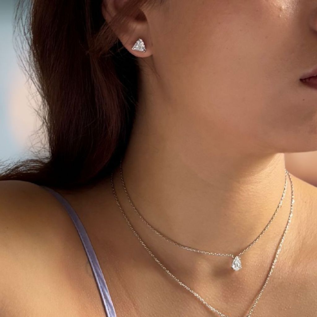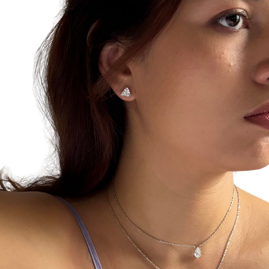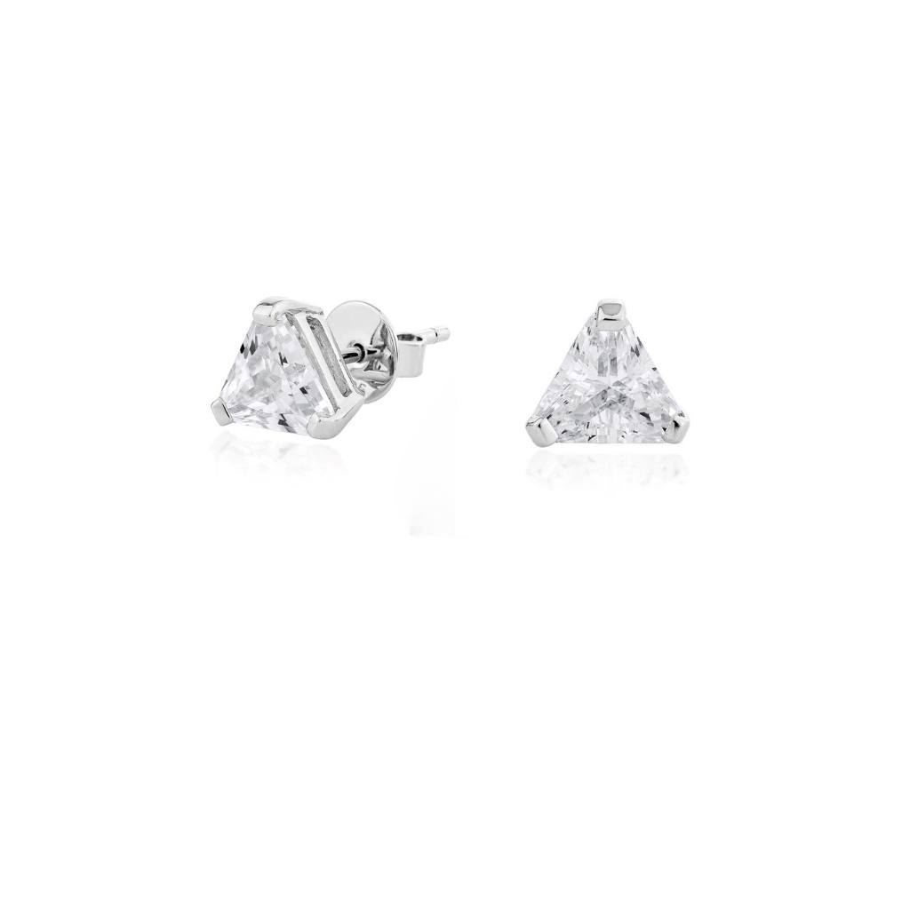 This triangle earrings is crafted in silver and set with a beautifully cut cubic zirconia, whose precise facets catch the light from every angle. Its geometric shape combines modern minimalism with sparkling brilliance, creating a striking yet elegant look. Perfect for wearing alone or paired with other earrings for a stylish layered effect.