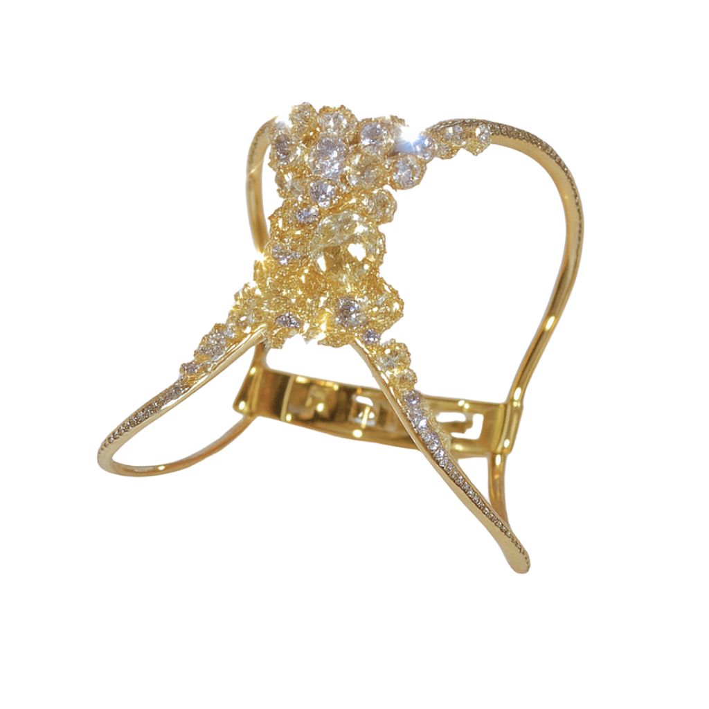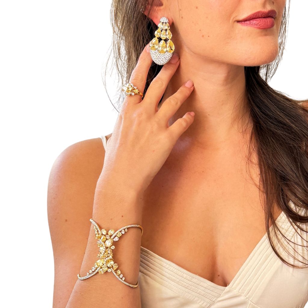 This unique handcrafted silver piece is adorned with yellow stones and sparkling cubic zirconia. Exquisitely detailed, it embodies the timeless femininity and refined elegance of P. Chatain’s signature style. A bracelet to fall in love with through every season, from spring to winter.